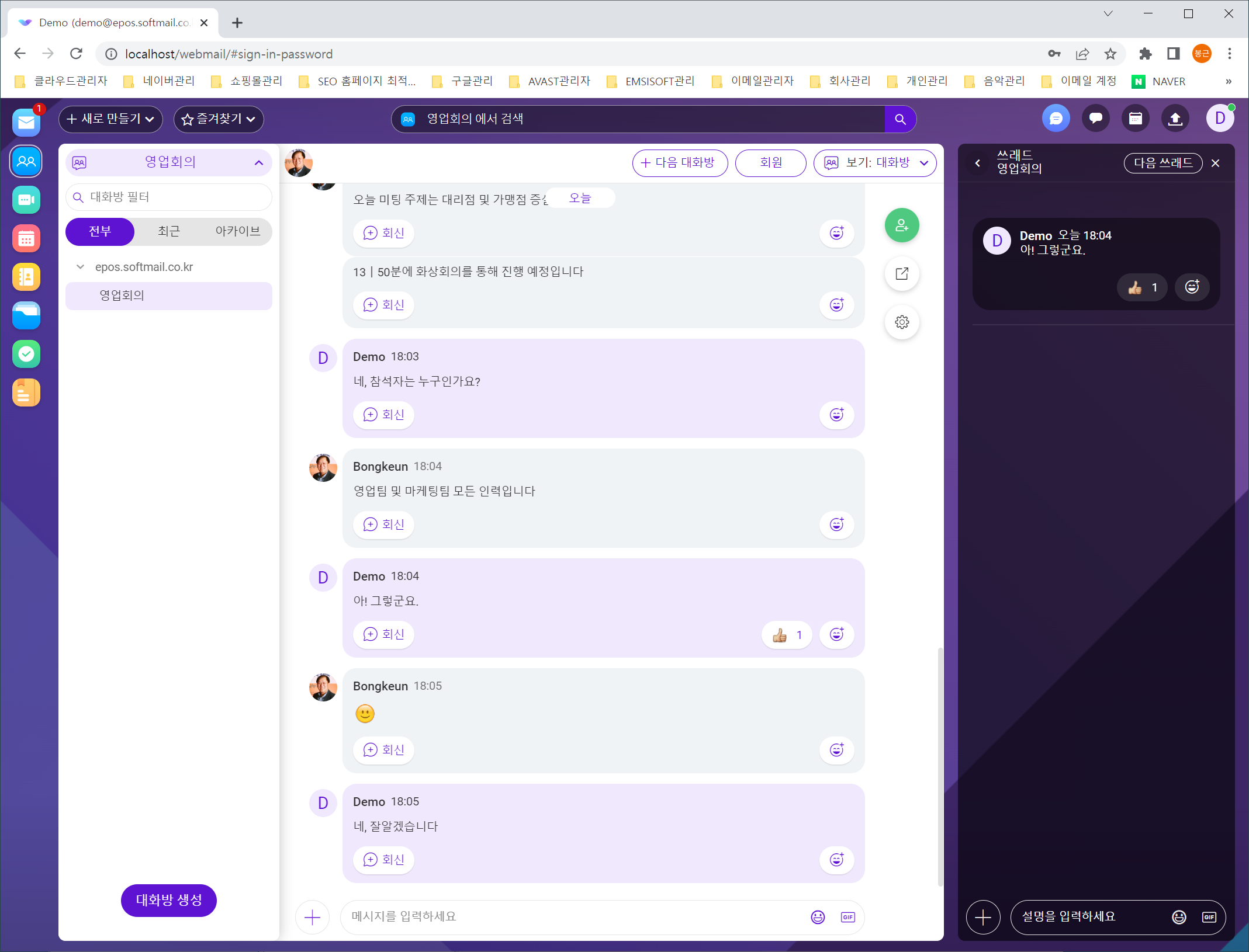 아울러, 설치형의 경우에도 윈도우서버 및 리눅스 서버에서 설치 가능하며 신규로 구독 라이선스 구매시 사용이 가능합니다. 이번에 오픈된 v14의 웹메일은 완벽하게 한글화가 진행되어져 있습니다.
