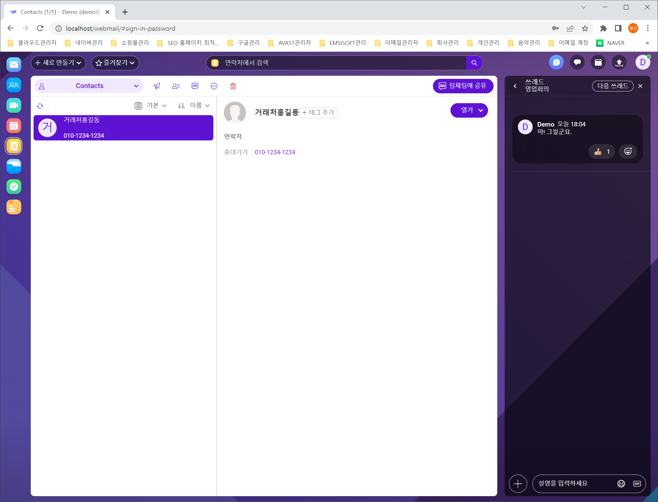 개인연락처는 물론 팀별 그룹 연락처 등 공유 연락처를 만들어 직원들과 공유할 수 있으며, 자동으로 계정의 모든 직원 연락처를 표시할 수 있습니다.